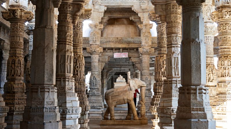 The main temple is the ‘Chaumukha’ Temple or the ‘Four Faces’ Temple, dedicated to Adinath, one of the 24 ‘Thirtankaras’, in the lineage of spiritual masters and teachers who laid the foundations of Jain philosophy.